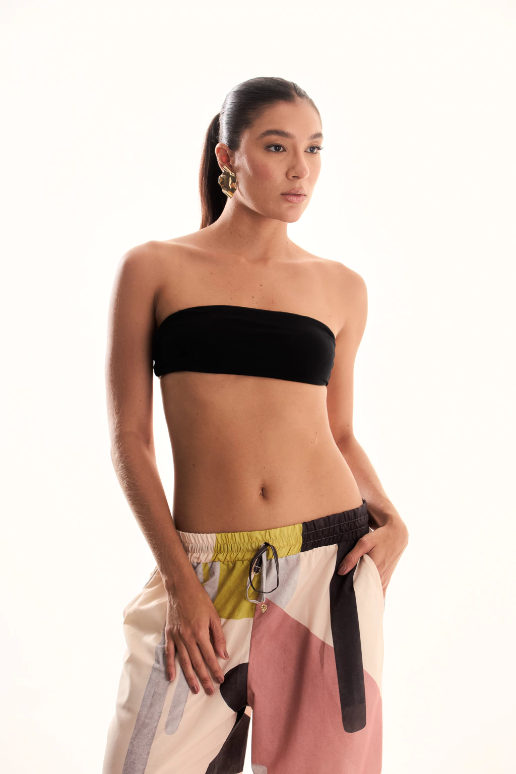Com modelagem bandeau tomara que caia, a peça oferece um visual clean e moderno que valoriza o colo e os ombros de forma elegante. O grande diferencial está no design reversível e multifuncional que permite duas formas de uso distintas, adaptando-se perfeitamente a diferentes ocasiões e estilos. A estrutura com elástico embutido garante sustentação adequada e fixação segura sem o uso de alças, proporcionando conforto durante todo o dia.