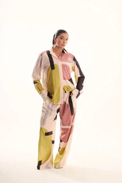A blusa artsy é a peça perfeita para quem busca um visual criativo e sofisticado. Confeccionada em tecido leve de alta qualidade com estampa artística exclusiva em tons de rosa, verde chartreuse, preto e off white, ela apresenta uma modelagem oversized especial que se adapta ao seu corpo, valorizando suas curvas com arte contemporânea.